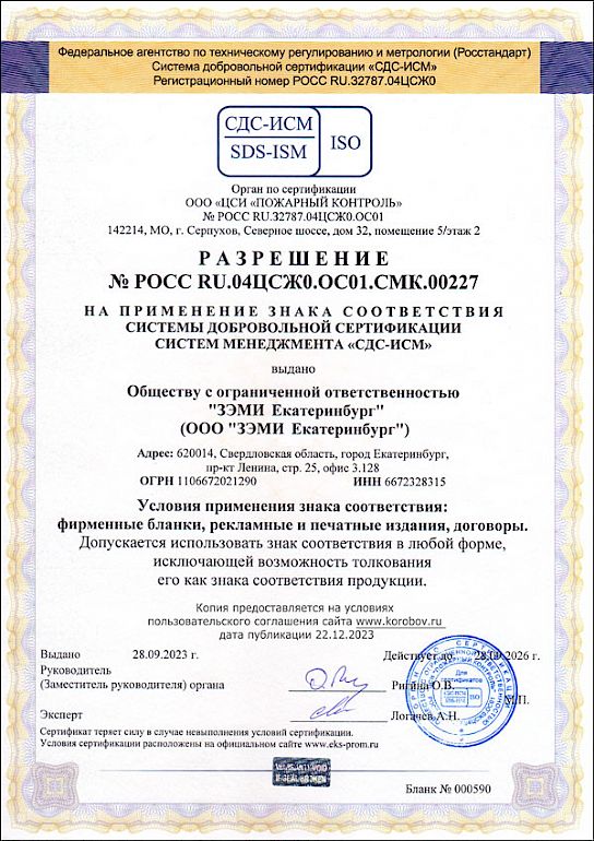 СЕРТИФИКАТЫ "ЗЭМИ ЕКАТЕРИНБУРГ"