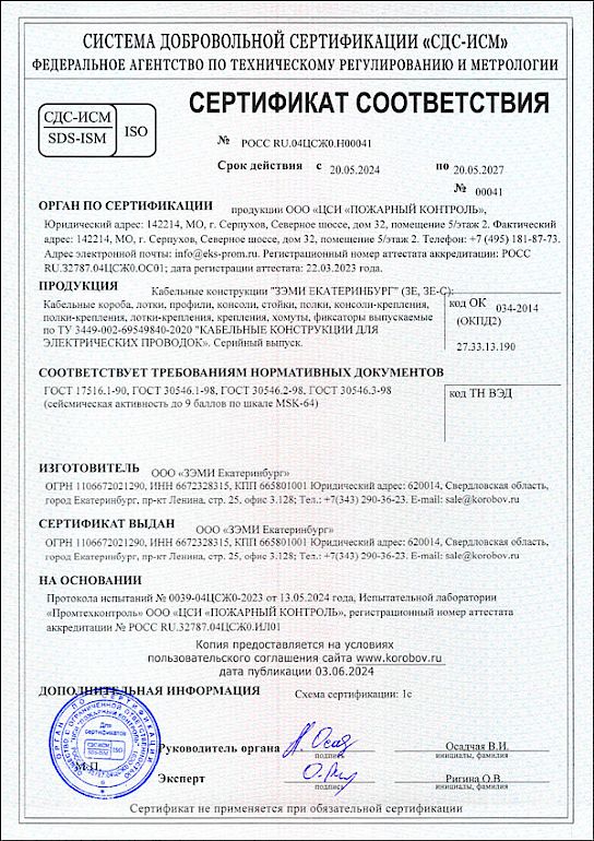 Уважаемые коллеги, кабельные конструкции марки ЗЕ прошли сертификационные испытания, по результатам которых получен сертификат сейсмостойкости до 9 баллов.